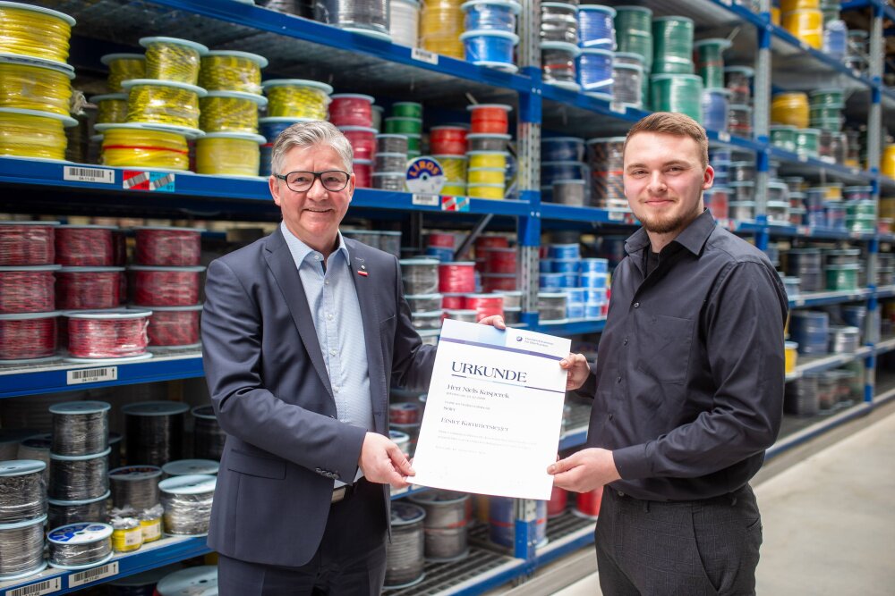 Christian Herpich, Vizepräsident der Handwerkskammer für Oberfranken, gratulierte Niels zu seinen Prüfungsergebnissen und überreichte die Urkunden.