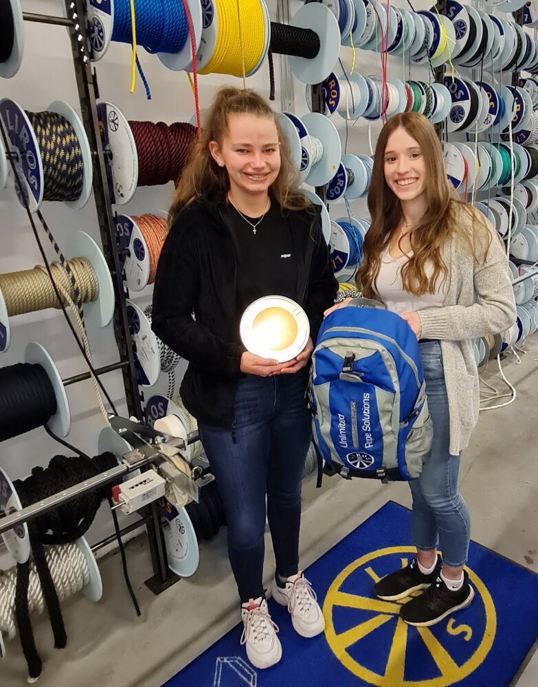 Trainee Pia Märkl presented the prize – a LIROS backpack, a cinema voucher and a LIROS bath towel!